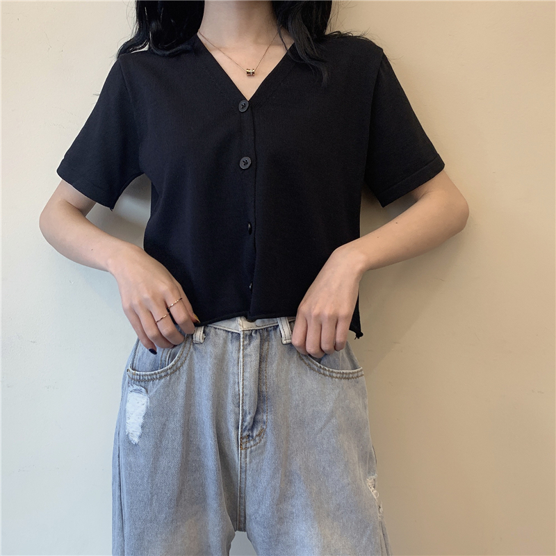 半小時前氣質v領薄款打底針織衫,2020夏季新款女裝短款開衫上衣 - 【買一送二】任選3件,僅需NT$1098